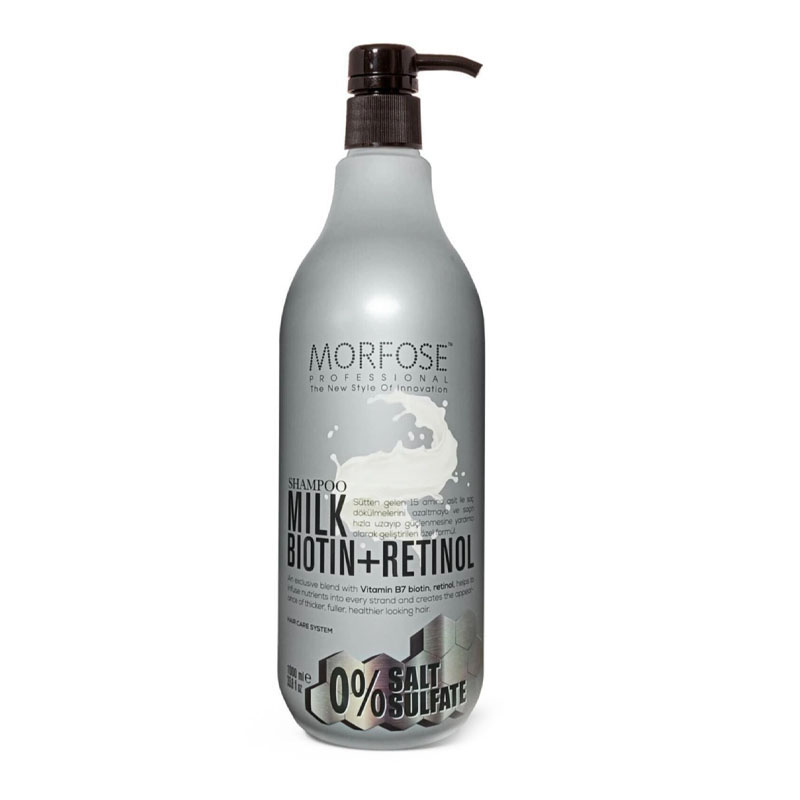 شامپو مو فاقد سولفات مورفوس Morfose مدل Milk Biotin+Retinol (طوسی) حجم 1000 میلی لیتر